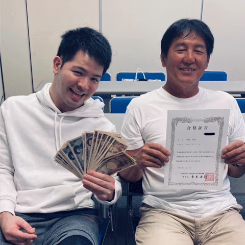 前新さん(八重山校) 仕事中の事故で体にハンディを負ってしまい将来について考えたときに宅建に興味を持ちました。 最初は独学で頑張ろうと思っていたのですが家に届いたチラシをきっかけにお父さんに勧められ「少しでも合格の可能性をあげよう!合格すればタダだし!」と中途半端な気持ちは捨てて入塾を決めました。 最初これでもかという程に無力さを痛感させられましたが塾のオンラインシステムをフル活用し解り易い講義動画を何回も見て隙間時間には一問一答を解き続けました。 事故の影響で記憶力に不安があったけど何度も繰返し視聴できる講義動画は助かったし模擬試験での満点は自信になりました。 塾には毎回お父さんが大好きなお酒を我慢して送迎してくれたので最後まで通い続けることができて本当にありがたかったです。 全額返金された受講代金は毎週塾へ送迎してくれた父へ感謝の気持ちとして半分渡すこともできて嬉しかったです。 残りは資格登録等に必要な費用に使おうと思っています。 今回の結果を受けて目の前の選択肢が増え資格を活かしたいという新しい目標もできました。 比嘉不動産宅建塾で合格できて良かったです。