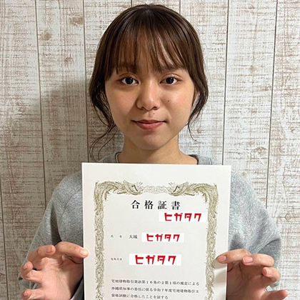 スキルアップのために新しいことに挑戦したいと思っていた私は、この言葉に惹かれて受講を決めました。 宅建については知識ゼロでしたが、半年間の受講を経て、本当に合格することができました。